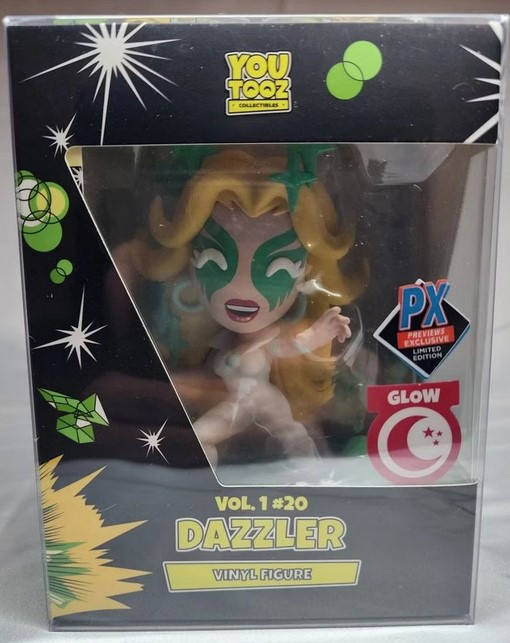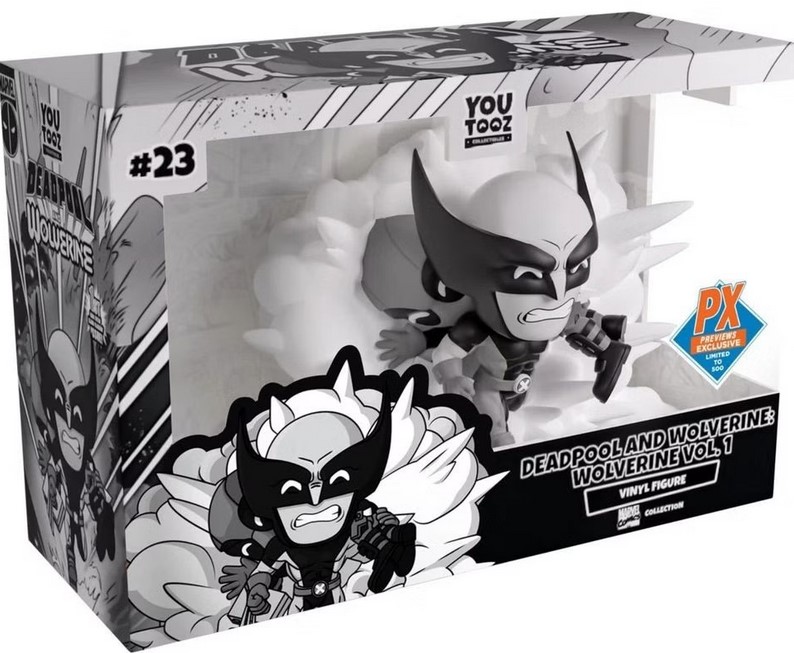YouTooz PX Dazzler glow in the dark vinyl figure and PX Deadpool and Wolverine: Wolverine black and white vinyl figure. Limited to 500 pieces each.
