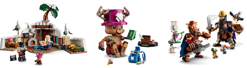 These six new LEGO sets allow fans to recreate the iconic characters and moments from Season 2 including: Tony Tony Chopper, Dr. Hiriluk’s Hideout, Dorry vs. Brogy – Giants of Little Garden, Battle at Drum Castle, Garp’s Marine Battleship, and Showdown with Captain Smoker.